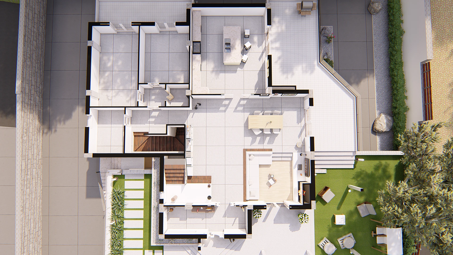 Così come la natura muta da stagione a stagione, VILLA BRZ cambia le sue atmosfere con l’alternarsi delle stagioni. L’area wellness al piano terra con piccola piscina coperta permette di godere del piacere di un ambiente ricercato per la cura del corpo affacciando su un giardino secco il cui compito è quello di stringere ancor di più il legame tra interno ed esterno. IL Calcestruzzo è lasciato nudo , essenziale; la rugosità del Corten e della pietra rievoca la scabrezza dei luoghi. La costruzione si nasconde dalla lunga distanza per poi aprirsi passo dopo passo alla vista dell’ospite.